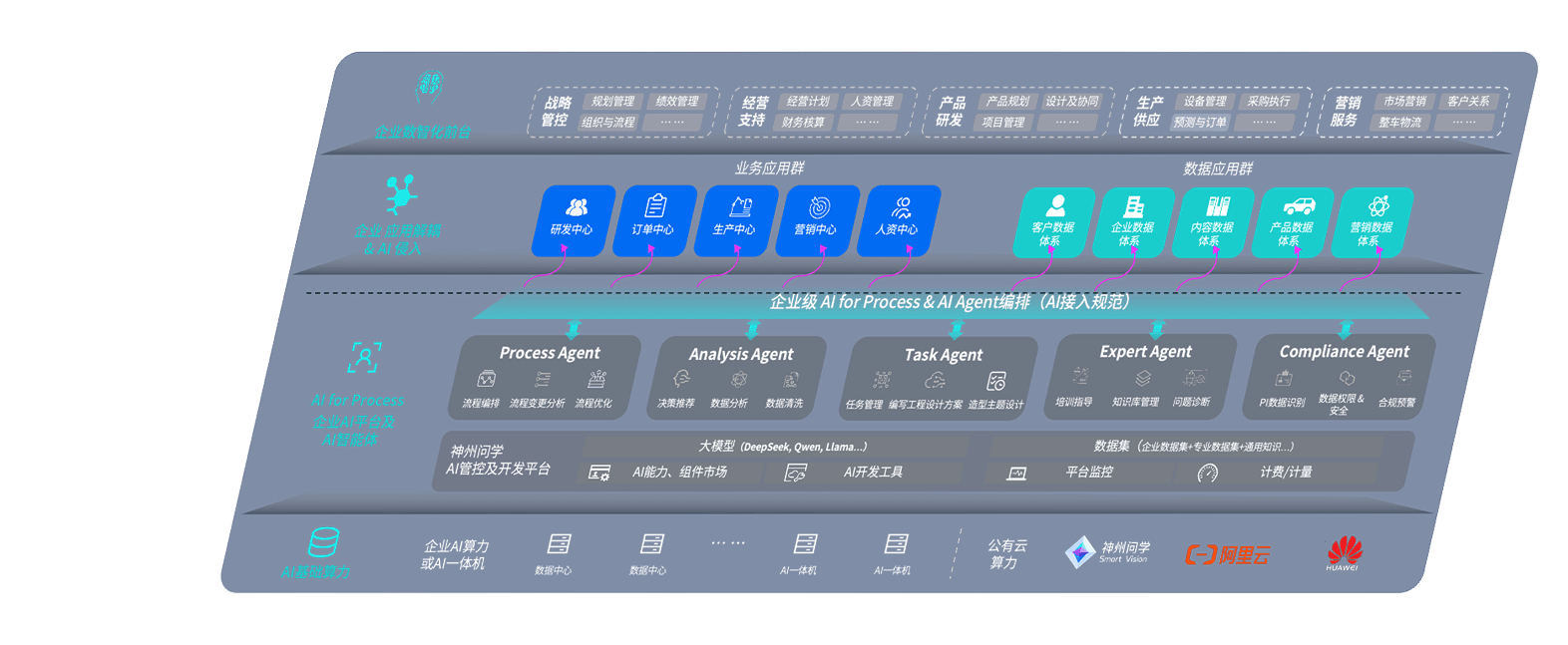 迪威国际问学智车解决方案是一套基于AI技术的汽车行业智能化系统,,覆盖从底层算力到顶层AI应用的全栈方案。。方案由算力层、、模型层和应用层组成:算力层,,,方案支持多种一体机配置,,,具备云端灵活部署、、、、多云适配以及动态优化计算资源的能力;模型层,,,,迪威国际问学平台版提供了企业级AI应用一站式构建与管理平台,,,,支持基于后训练强化技术的汽车企业专属模型的训练、、、、评测和运营;应用层,,,迪威国际问学DeepSeek版提供包括超级员工、、智能招采、、、智能营销、、智能客服、、、、AI for BI等一系列解决方案,,,,可助力汽车行业实现数字化转型,,让管理更智能、、响应更敏捷。。。